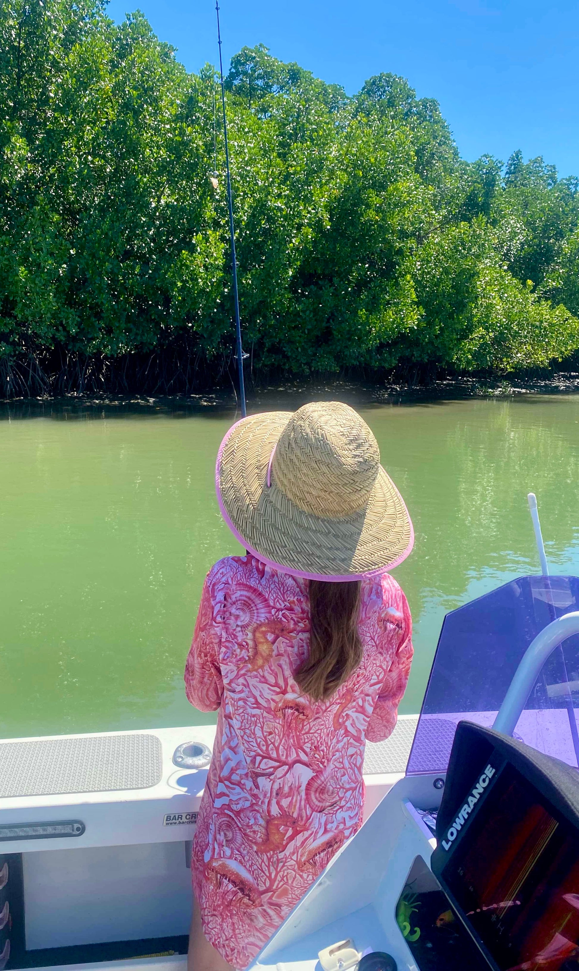 The Coral Chic long-sleeved fishing dress is perfect for girls to stay sun-safe yet stylish while outdoors, complete with pockets to hold treasures found along the beach. The design features beautiful pink, coral, orange colours and reef-inspired theme including seahorses, starfish, jellyfish and coral. There is a matching outfit for mum in our 'Dress' collection.